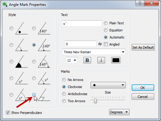 Note that I need the extra line on the base to give the angle tool an angle to find. If you don’t want that line, select it and change the line setting to invisible.