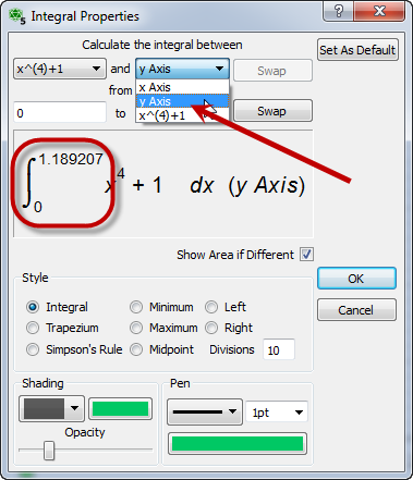 First, select the Integral Tool and sweep out an area – any area. Just click, move the mouse and release.