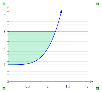 Hover over the integral and right click. Edit properties. Change the integral to be to the y axis and change the bounds of integration to be 0 to 1.189207 (x when y = 3)