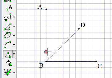 FX Draw will draw a line indicating the two arms you are trying to mark. Once it has found BC (again, the red circle) release the left mouse button. FX Draw will then construct the angle mark you want.