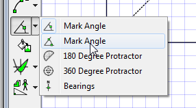 The standard angle marking tool is extremely quick and useful but it will always have trouble when there are more than one angle defined at a vertex. Instead of trying to “guess” which angle you intended to be marked, it will ALWAYS default to the smallest angle indicated by the position of your mouse.