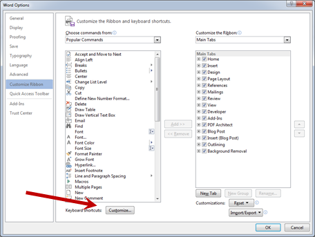 2. Choose Customize the Ribbon (shown above).