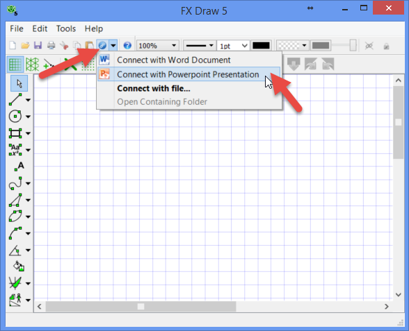 3. In FX Draw, choose PowerPoint from the Connect list.