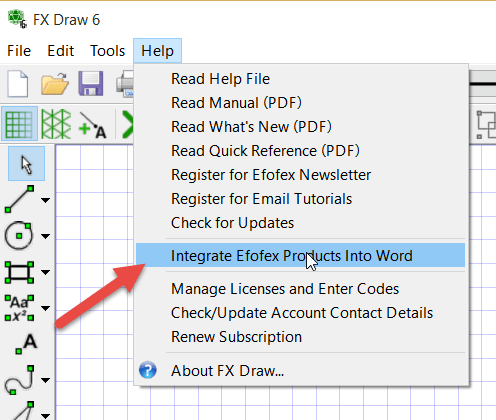 1. Direct any affected users to start one of the Efofex programs from the Start menu and choose the Integrate option from the Help menu to get their Word integration.