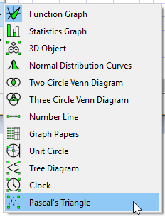 Select the tool and sweep out a rectangle. Your Pascal’s triangle will appear. There are lots of available options. All of these graphics have come from the new tool.