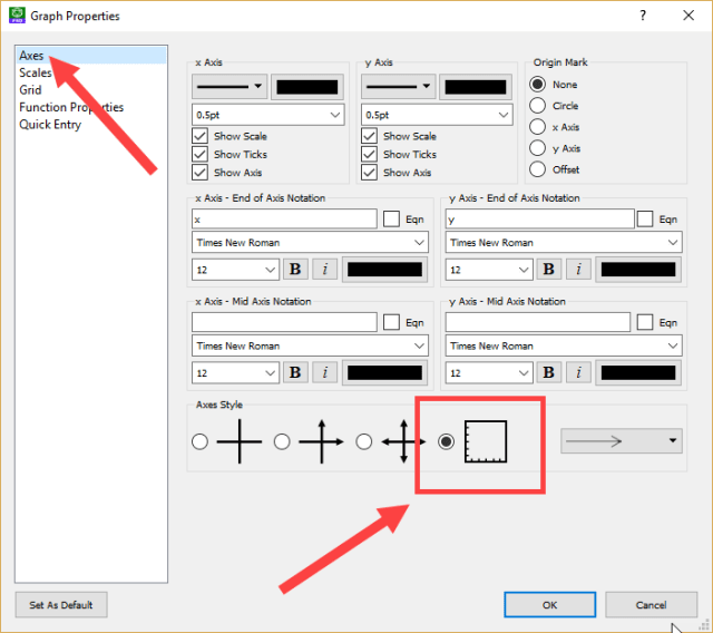 The new style removes all of the axes and just shows the scale on two sides of the plane. You can choose the style on the Axes page of graph properties.