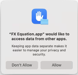 Another feature that MacOS uses for security is “sandboxed” data. This means that products (like Word) can create a data storage location that only it can access. As we need to interact with Word at quite a deep level, we need access to this location. This is something that the user will also be asked to allow.