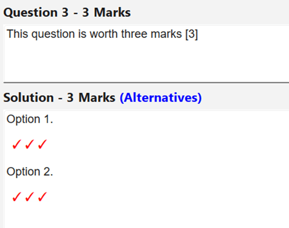 If you solution contains marks which are a multiple of the number of marks in the question, FX Manifest will automatically flag the solution as containing alternatives.