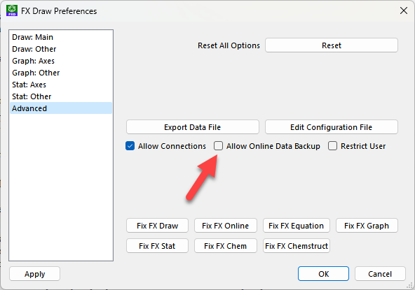Place a check mark in Allow Online Data Backup and the system will operate as it has in the past.