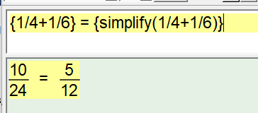 Often teachers do not want to simplify things immediately. Instead, they want to show the unsimplified version and then show the process of simplification. In other words, they would prefer to see 10/24. The new Uns display setting performs calculations without simplification.